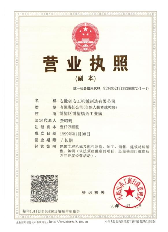 - 安徽省安工機(jī)械制造有限公司下設(shè)工程機(jī)械廠(chǎng)、耐磨合金材料廠(chǎng),公司是以制造、加工、銷(xiāo)售建筑工程機(jī)械和耐磨耐熱合金鑄造配件為主的企業(yè)。 安徽省安工機(jī)械制造有限公司堅(jiān)持“以質(zhì)量求生存、以科技求進(jìn)步、以人才求發(fā)展、以服務(wù)求信譽(yù)”的生產(chǎn)經(jīng)營(yíng)方針,依靠科...